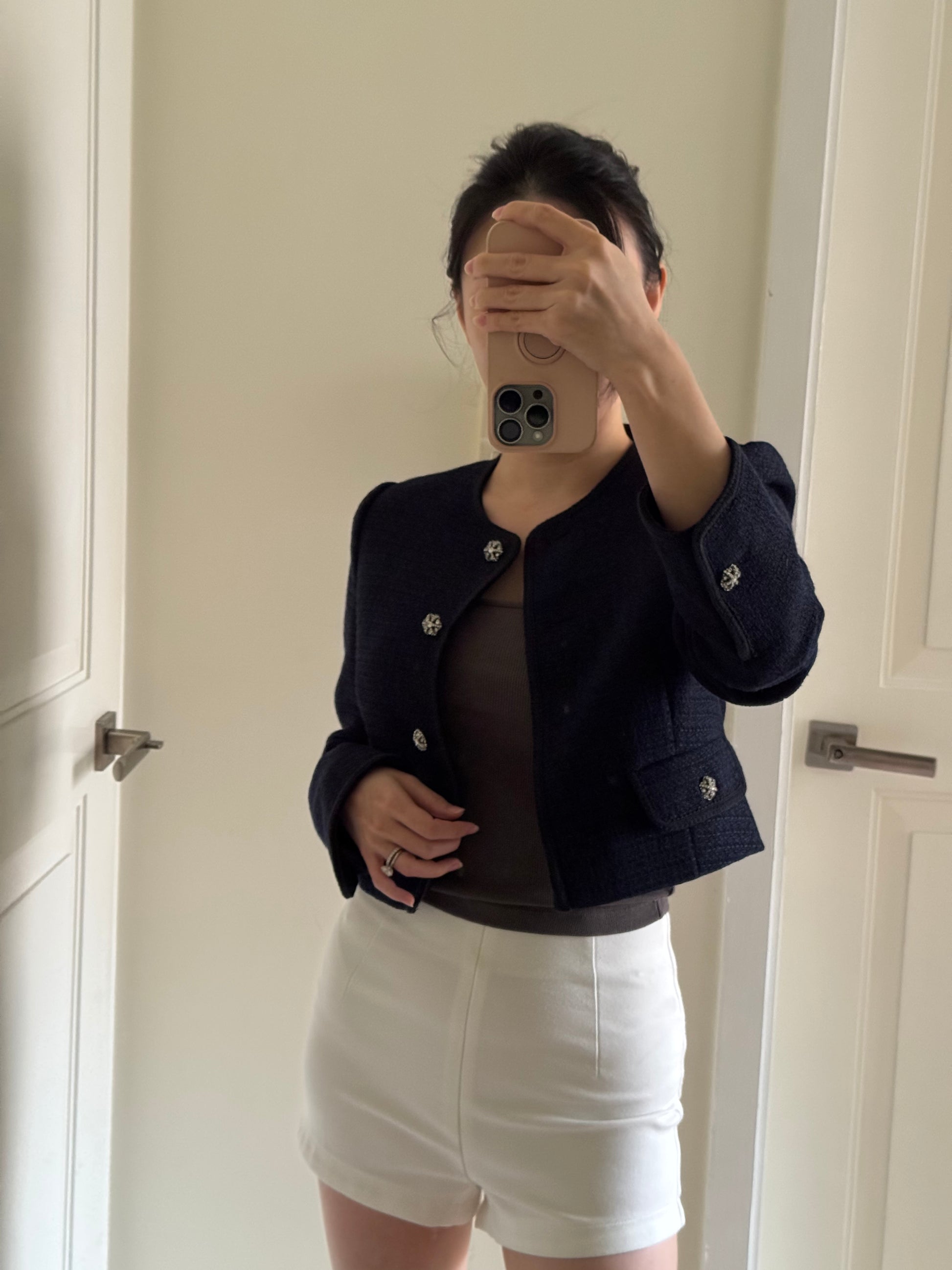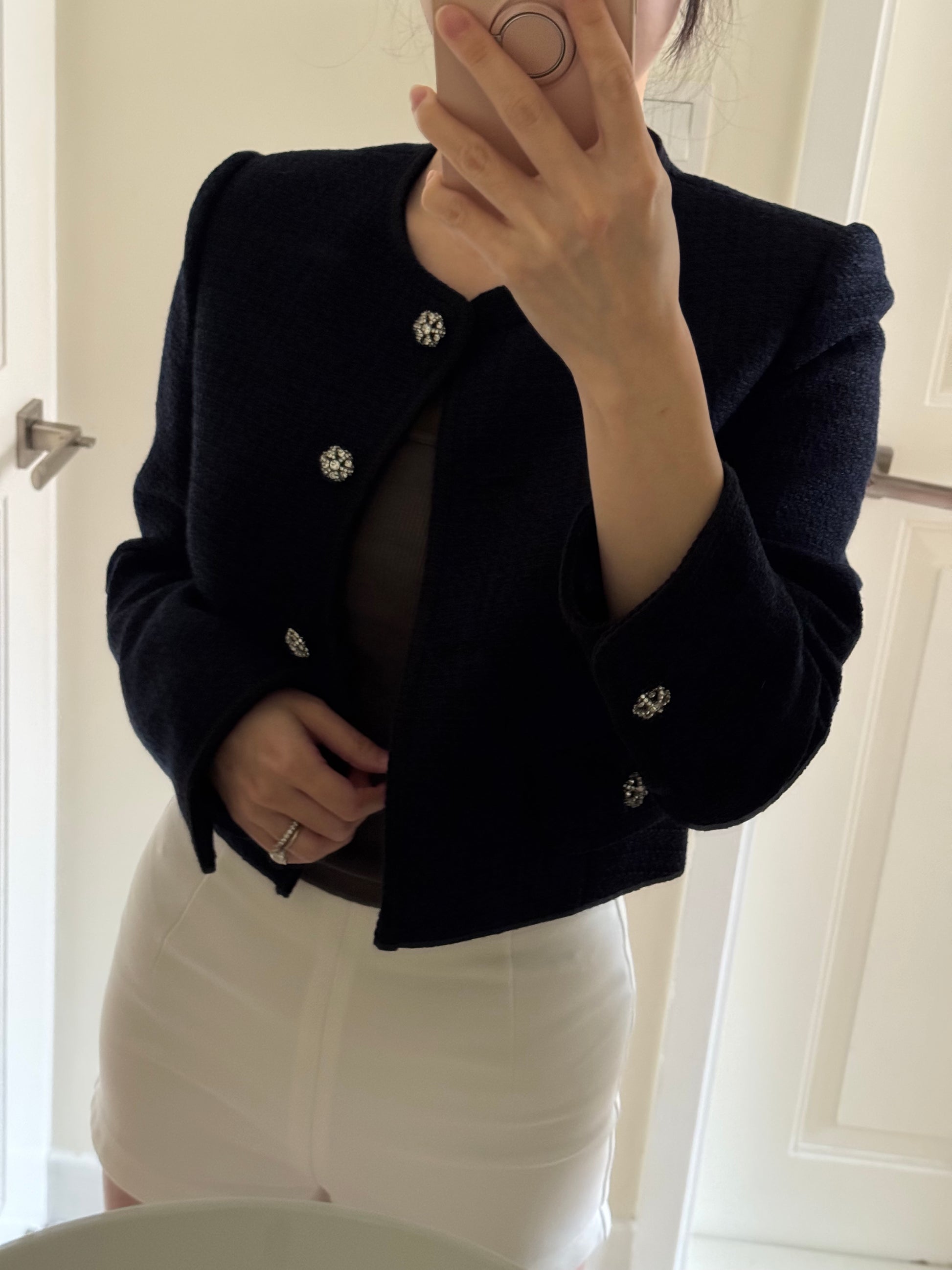 Navy Blue Tweed Boucle Blazer 深藍短身小香風外套